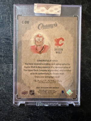 DUSTIN WOLF 2023-24 UPPER DECK CLEAR CUT ROOKIE CHAMPS AUTO /50