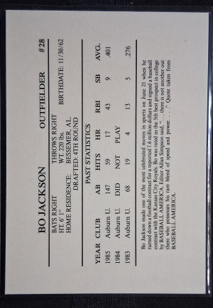 1986 Memphis Chicks Bo Jackson #28 Silver Minor League Rookie