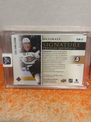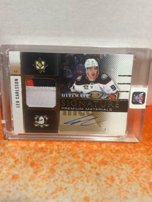 2024-25 Upper Deck Ultimate Signature Premieum Materials Leo Carlsson /35