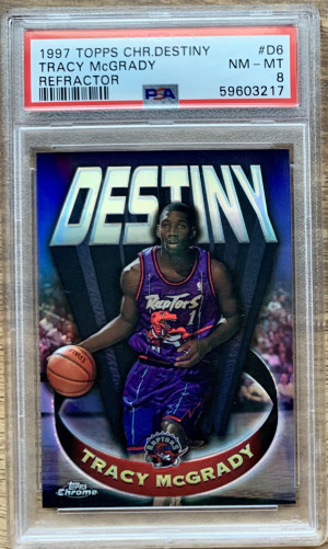 1997-98 Topps Chrome Destiny Refractor Tracy McGrady #D6 PSA 8 Rookie RC HOF