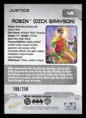 2025 SkyBox Metal Universe Batman Robin (Dick Grayson) #45 Justice Holo 198/250