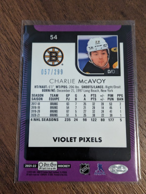 Charlie McAvoy Violet Pixels /299 OPC Platinum O-pee-chee