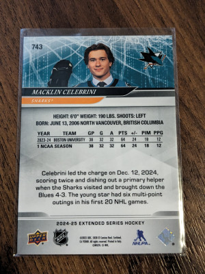 Macklin Celebrini 24-25 UD 1st Round Draft Pick Rookie #743 San Jose Sharks🦈