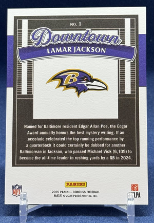 2025 Panini Donruss Downtown Lamar Jackson Baltimore Ravens Regular Size