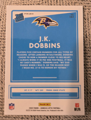 JK Dobbins Donruss Optic Rated Rookie Silver Holo