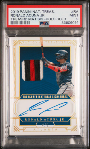 2019 Panini National Treasures /5 Treasured Material Signatures Ronald Acuna Jr. Holo Gold