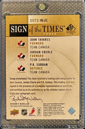 2012 SP Authentic Sign Of The Times Three AUTO John Tavares /Eberle/ Subban /25