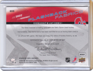 2008-09 SPx Flashback Fabrics Jersey #203 Joe Sakic