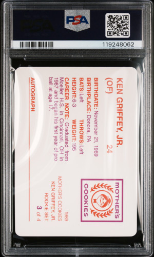 1989 Mother's Cookies Ken Griffey Jr. Ken Griffey Jr. Bat Over Left Shoulder
