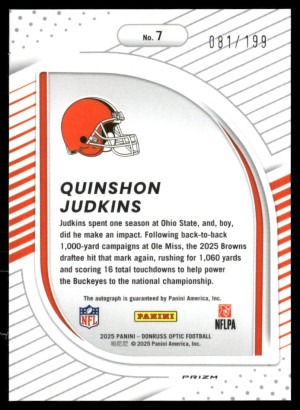 2025 Donruss Optic #7 Quinshon Judkins Hidden Potential Autographs #/199
