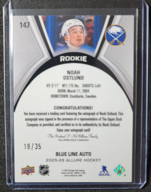 Noah Ostlund Allure Blue Line Auto Rookie /35