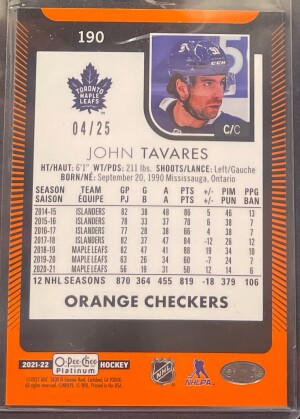 John Tavares Orange Checkers /25