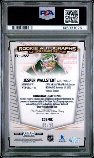 2024 Cosmic Rookie Auto Jesper Wallstedt /50 (POP 1)