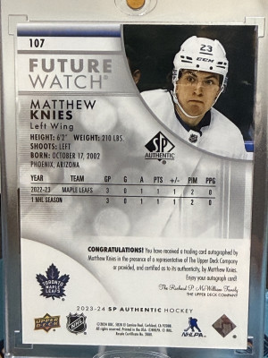2023-24 SP Authentic Matthew Knies Future Watch Auto /999
