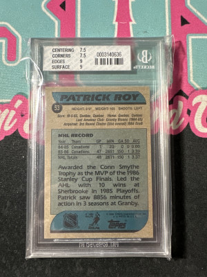 1986-87 Topps #53 Patrick Roy RC BGS 7.5 ROOKIE HIGH SUBS HOF