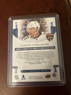 22-23 UD Artifacts Carter Verhaeghe Dual Relic 195/249