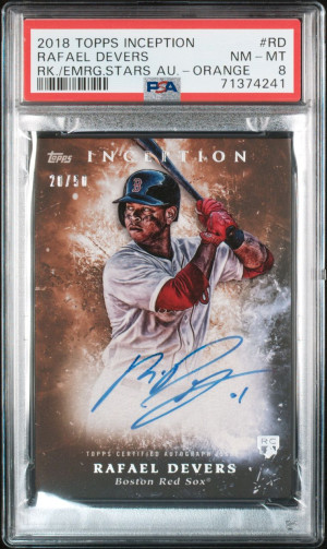 Rafael Devers 2018 Topps Inception Rookie and Emerging Stars RC Orange /50 PSA 8