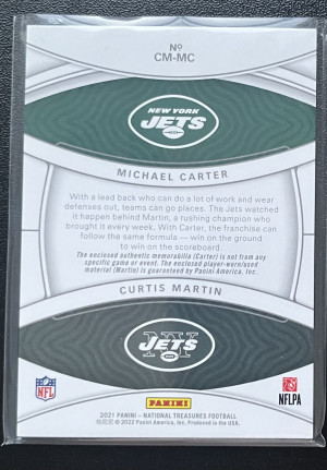 2021 Panini National Treasures NFL Gear Combo Michael Carter/Curtis Martin /99