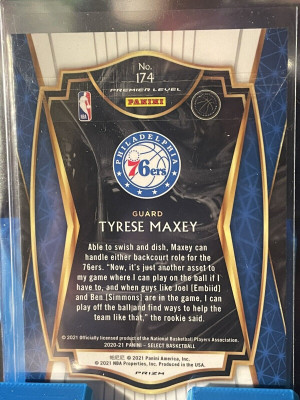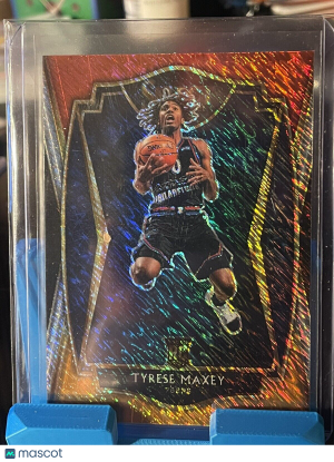 2021-22 Select Basketball RC TYRESE MAXEY RED, WHITE, AND ORANGE SHIMMER