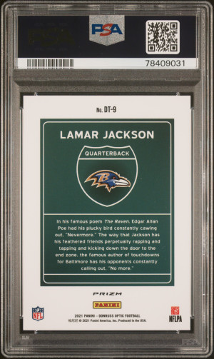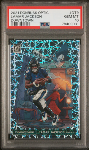2021 Panini Donruss Optic Downtown Lamar Jackson #DT9 Parallel/Variety PSA 10