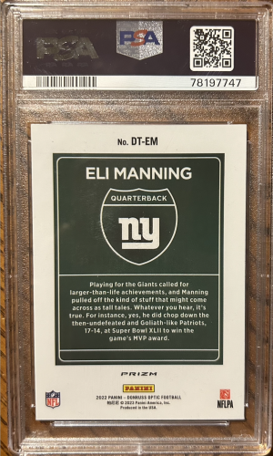 2022 Panini Donruss Optic Downtown! Eli Manning Gem Mint PSA 10