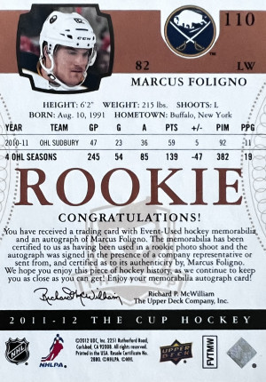 2011-12 Upper Deck The Cup RPA /249, Marcus Foligno