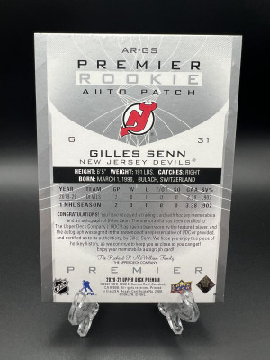 Gilles Senn 2020 Upper Deck Premier Acetate /249 RPA