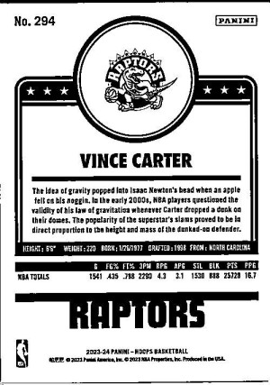 2023-24 Hoops #294 Vince Carter Red Backs