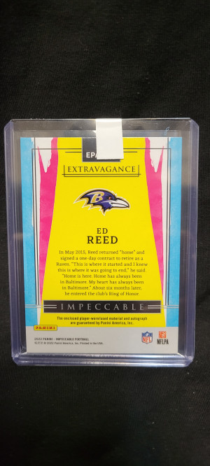 2022 Impeccable Ed Reed Extravagance Patch Auto /75
