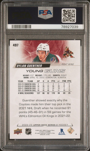 Dylan Guenter Young Guns Canvas PSA 10 2022-23 497 Arizona Coyotes