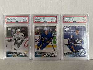 Young Guns Brandt Clarke, Dylan Cozens, Jack Quinn PSA 10
