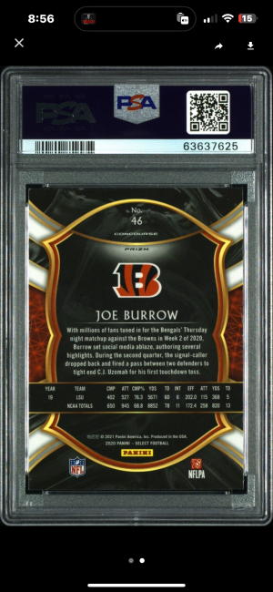 2020 Joe Burrow Select Silver Prizm