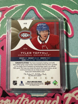 2020-21 Upper Deck Premier Tyler Toffoli Game Used Fight Strap /5