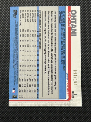 Shohei Ohtani 2019 Topps Chrome #1 Blue Refractor /150 Rookie Cup Dodgers Angels