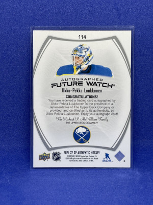 2021-22 Upperdeck SP Authentic Ukko-Pekka Luukkonen Future Watch auto /999