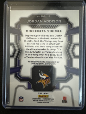 2023 Prizm Jordan Addison Rookie Gear Green Pulsar