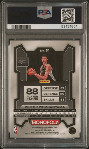 Victor Wembanyama 2023 Prizm Monopoly #81 Rookie Card PSA 10 Gem Mint Spurs