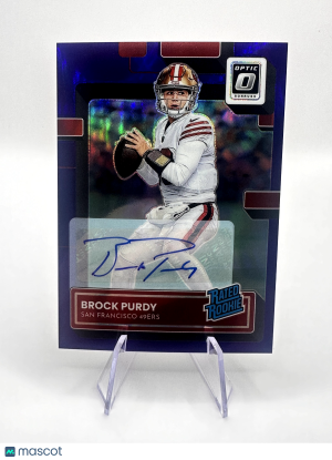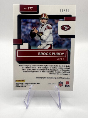 '22 Panini Donruss Optic BROCK PURDY Rated Rookie Purple Auto JERSEY MATCH 13/35