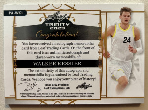 2022-23 Leaf Trinity Basketball Walker Kessler Rookie Patch Auto /40 RPA 3 Color
