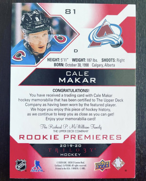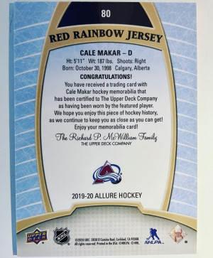 Cale Makar Upper Deck Allure Red Rainbow Rookie Jersey