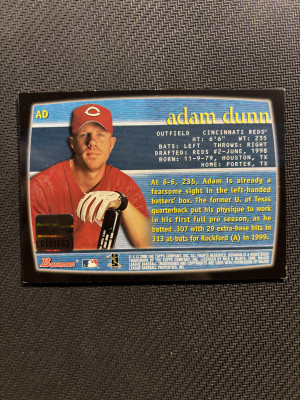 2000 Bowman Adam Dunn RC Autograph Blue