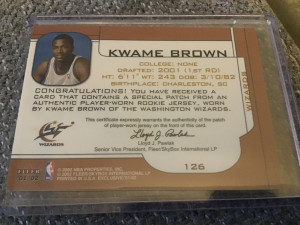 2002 Fleer Kwame Brown 3 color patch Fleer exclusive