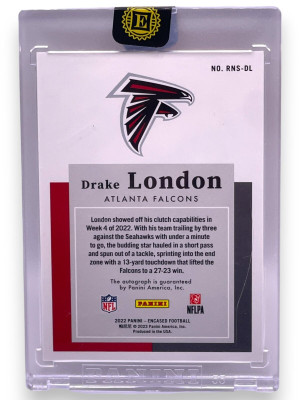2022 Panini Encased Drake London Rookie Notable Signatures Ruby /15 Rookie RC