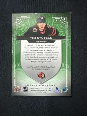 2022-23 Stature Tim Stutzle Auto /50 Senators