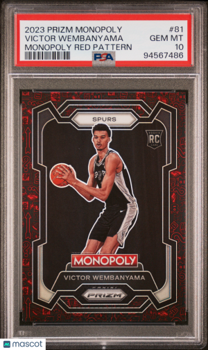 2023 Panini Prizm Monopoly Victor Wembanyama Red Pattern SSP PSA 10 GEM MT