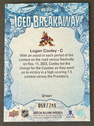 2023-24 UD ICE Logan Cooley ICED BREAKAWAY Rookie Green /249