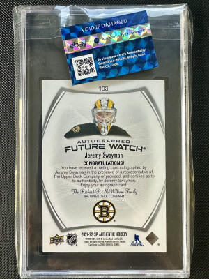 Jeremy Swayman | 21-22 SP Authentic | Future Watch Auto /999 SGC 9.5