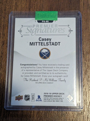 2018-19 Upper Deck Premier Signatures #PS-MI Casey Mittelstadt RC AUTO Rookie
