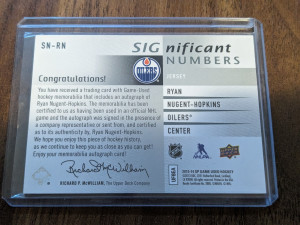 Ryan Nugent-hopkins sp game used significant numbers auto jersey numbered/93