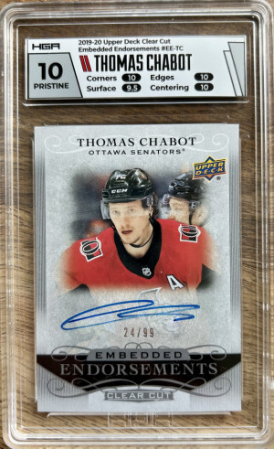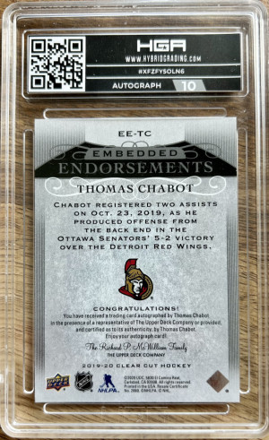 2019-20 UD Clear Cut Embedded Endorsements /99 Thomas Chabot #EE-TC Auto HGA 10